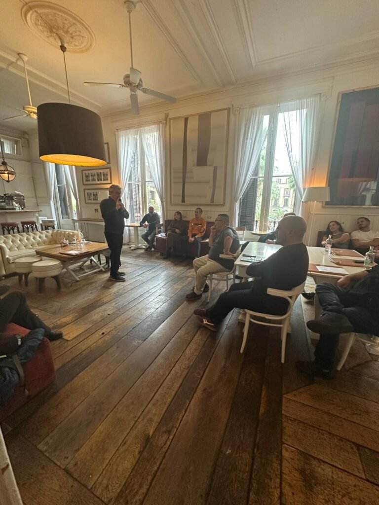 Fueron un público maravilloso y cuando empezaron a verse dentro de la hisotira, entendieron que realmente era un monólogo personalizado de empresa. Además, antes de empezar siempre pido poner cara a todos los protagonistas que aparecen, de tal manera que cuando hablo de alguien, miro a esa persona, creando la ilusión de que realmente los conozco. El resultado es realmente espectacular.